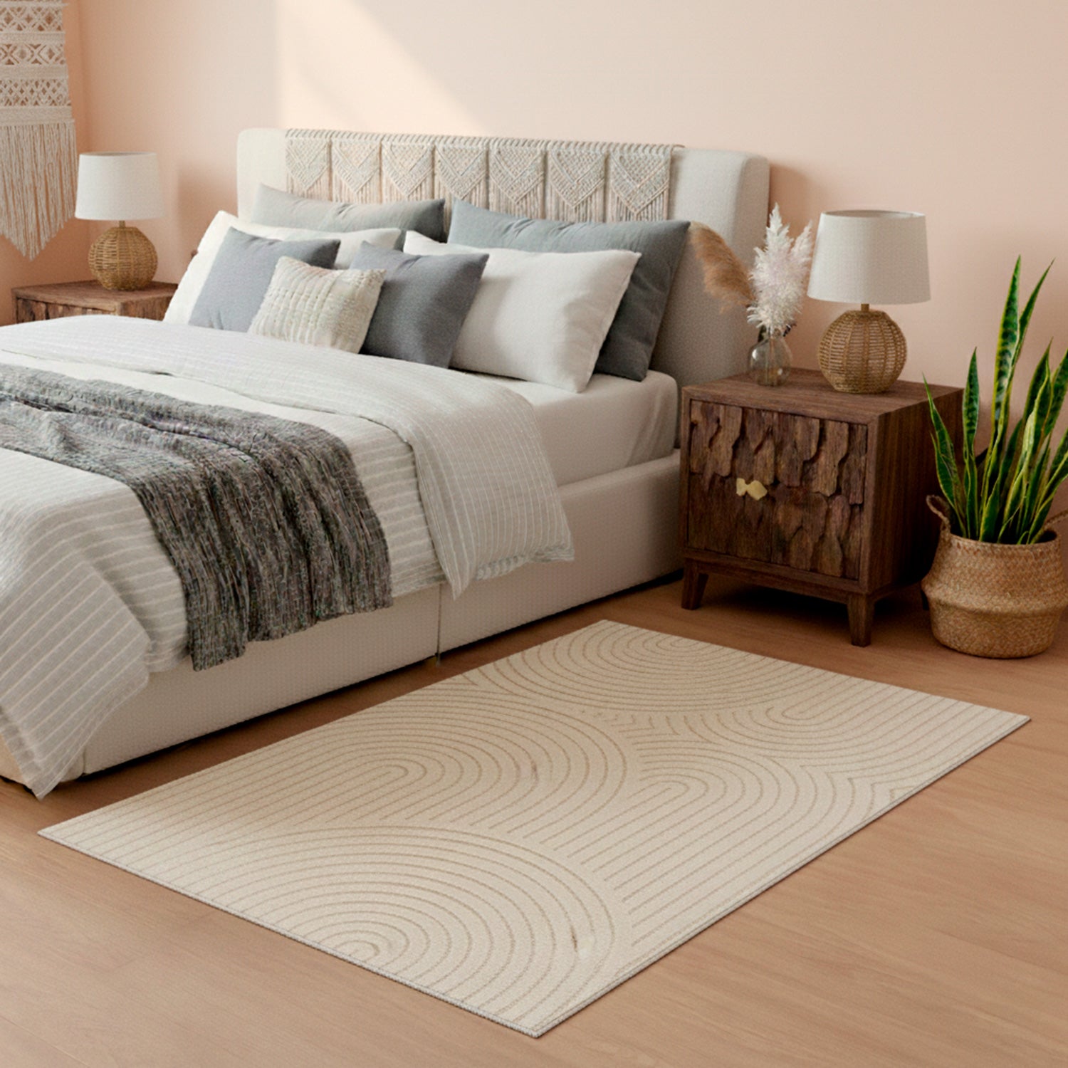 La Alfombra Navarra 59602-066 de 60x115 cm, ideal como bajada de cama, es perfecta para aportar luminosidad y sencillez a tus espacios. Su color blanco realza la sensación de amplitud y se integra con facilidad en ambientes de estética limpia y equilibrada.Confeccionada en 70% polipropileno y 30% poliéster, combina resistencia y suavidad, ofreciendo una excelente durabilidad para el uso diario. Su textura heatset entrega un acabado uniforme y agradable al tacto, manteniendo la definición de las fibras en el tiempo.De estilo nórdico, esta alfombra destaca por su diseño funcional y minimalista, ideal para dormitorios y espacios acogedores que buscan una atmósfera cálida, ordenada y contemporánea. ¡Dale a tu hogar el toque de diseño que se merece con Alfombras DIB!