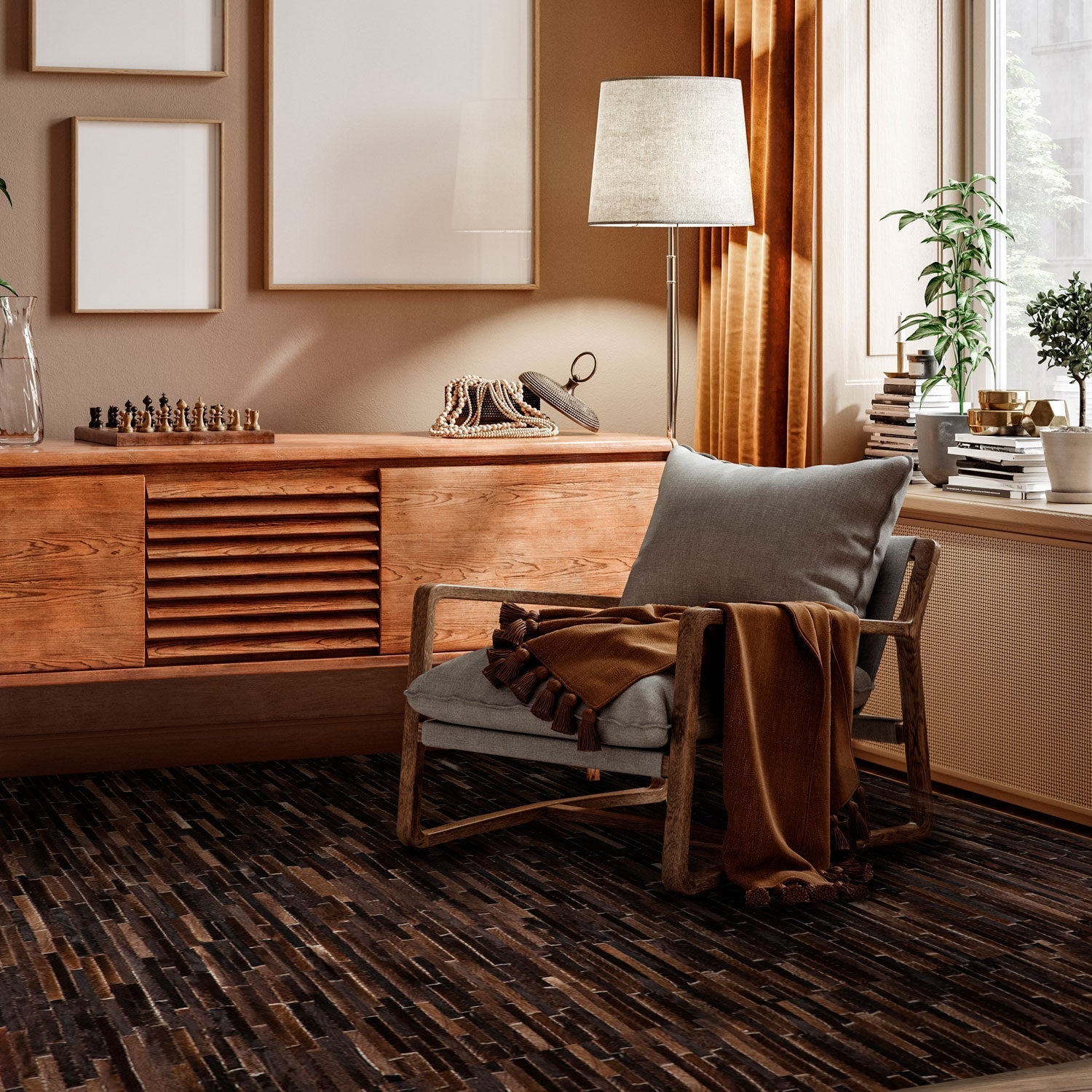 La alfombra Cuero Fashion es una pieza de elegancia atemporal. Confeccionada con 100% cuero natural, esta alfombra de 160x230 cm es una declaración de lujo y estilo. Debido a la naturaleza del cuero, el color puede variar ligeramente de la imagen, lo que le confiere un carácter único. Esta alfombra es la elección perfecta para aquellos que buscan añadir un toque de sofisticación a su hogar.