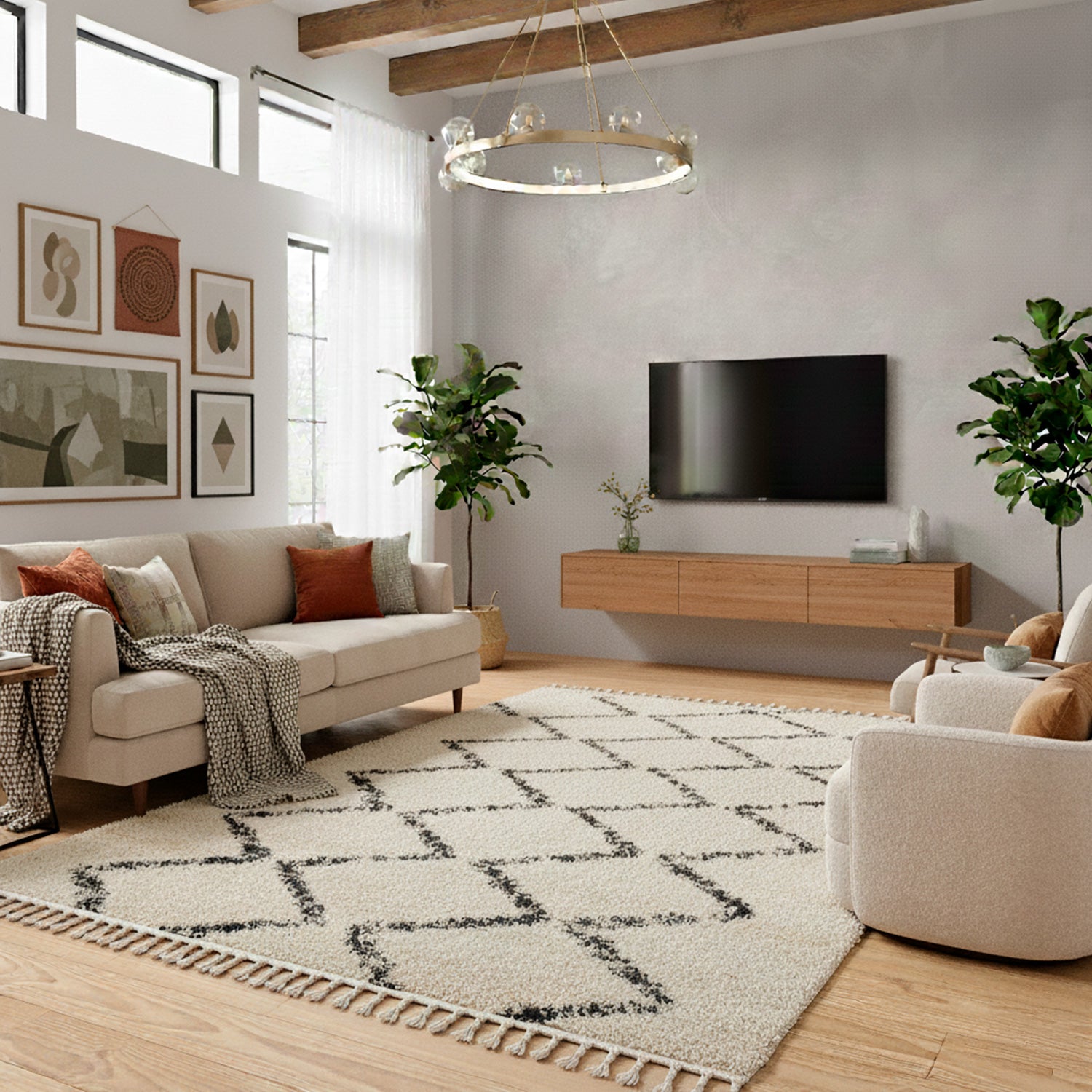 Alfombras Modernas Con motivos y colores inspirados en las culturas ancestrales, transporta a mundos lejanos. Sus detalles geométricos y abstractos la hacen ideal para darle un toque bohemio a tu sala. Materiales naturales que añaden calidez a tu hogar. Neutros que se adaptan a todo. Aportan calidez sin imponer un estilo. Ideal para cubrir amplias zonas en salas de estar o comedores donde recibir invitados. Da calidez a espacios grandes.