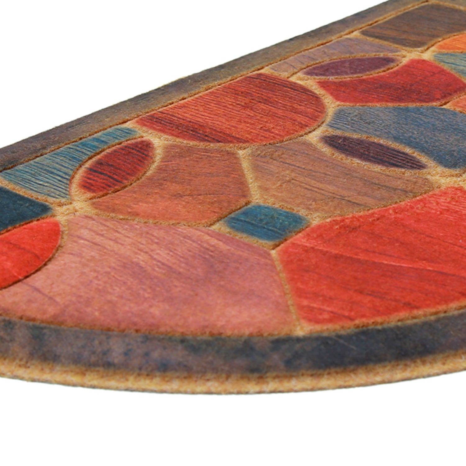 El limpiapiés Rubber Color Design 1003 destaca por su diseño semicircular con formas geométricas y tonos cálidos combinados con azules y rojos, ideal para dar un toque decorativo a la entrada del hogar. Fabricado en polipropileno con base de caucho reciclado, es resistente al uso diario y cuenta con base antideslizante que entrega mayor seguridad. Perfecto para puertas principales y accesos interiores.